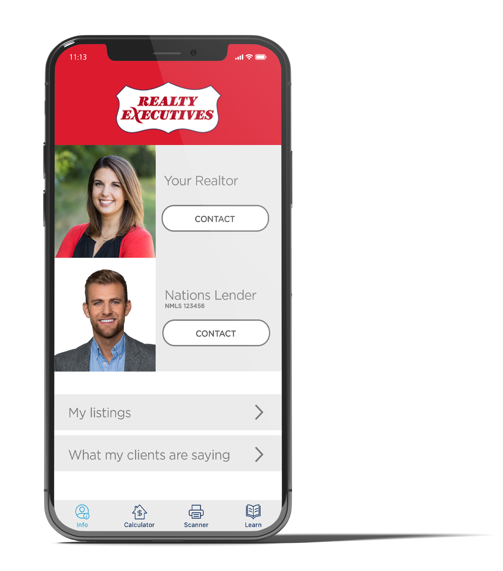Customizable buttons allow us to tailor the in-app experience to the way you do business, and to include all your listings right there, in the app. Clients can answer some of their own questions with the app’s easy-to-use mortgage calculator, and upload loan-related documents from their phone, directly into the mobile app.